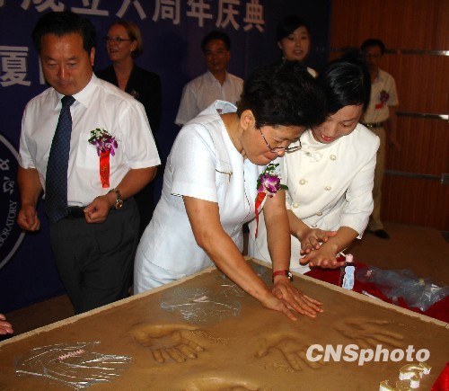 8月8日,海峽兩岸和來自日本、德國等國家和地區(qū)的臨床醫(yī)學檢驗界權威、知名專家,匯聚廈門,出席“國際醫(yī)學檢驗質(zhì)量與創(chuàng)新高峰論壇”,切磋臨檢醫(yī)學的最新方法、醫(yī)檢質(zhì)量的提高與創(chuàng)新等議題。與會專家舉行手印儀式,象征攜手合作。圖為臺灣醫(yī)檢師學會主任委員吳竹蘭教授在“心手相連、共向未來”的模板上留下手印。 中新社發(fā) 楊伏山 攝