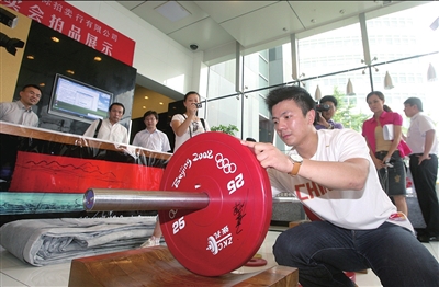 民間奧運(yùn)藏品拍賣爭奪激烈張湘祥奪冠杠鈴拍得7.2萬元