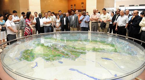 8月11日,講解員在向外國駐華使團(tuán)代表介紹新疆基本情況。新華社記者 沙達(dá)提 攝
