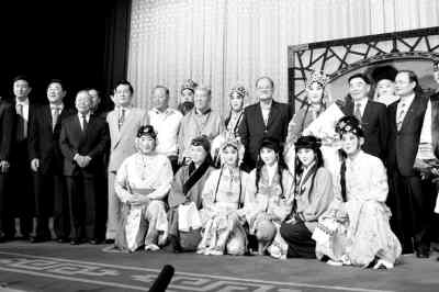 中國和平統(tǒng)一促進(jìn)會(huì)已連續(xù)3年與北京京劇院合作,組織藝術(shù)交流團(tuán)赴臺(tái)灣進(jìn)行公益演出。圖為2008年10月京劇藝術(shù)團(tuán)赴臺(tái)演出后,觀眾與演員合影。