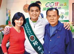 邱名璋(中)力拼連任屏東縣議員,父親邱茂男(右)、姐姐邱議瑩(左)是最大靠山。