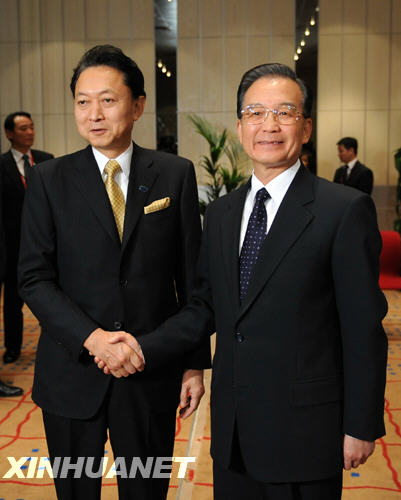 12月17日,中國國務(wù)院總理溫家寶在哥本哈根會(huì)見日本首相鳩山由紀(jì)夫。新華社記者劉建生攝
