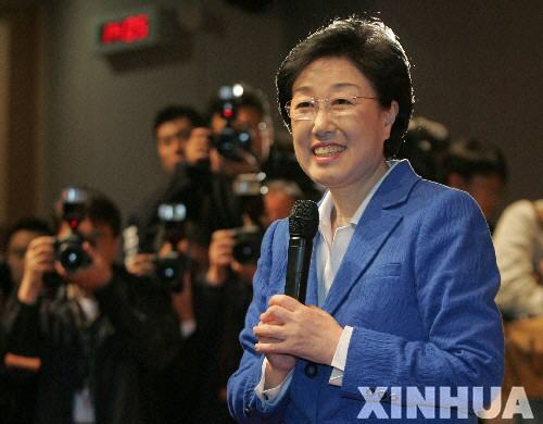 資料圖片:2007年3月7日上午,韓國總理韓明淑在首爾發(fā)表告別講話。當天,韓國首位女總理韓明淑正式辭去總理職務。 新華社發(fā)(紐西斯通訊社)