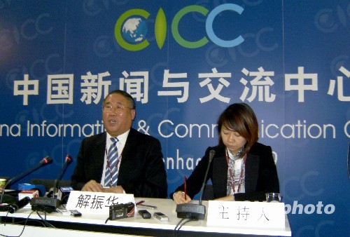 參加哥本哈根聯(lián)合國氣候變化大會的中國代表團團長解振華當?shù)貢r間12月14日舉行媒體吹風會,介紹會議進展情況并回答記者提問。 中新社發(fā) 李洋 攝