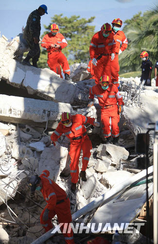 8名海地地震被埋我失蹤人員位置已經(jīng)基本確定 1月15日,中國(guó)國(guó)際救援隊(duì)隊(duì)員在聯(lián)合國(guó)駐海地穩(wěn)定特派團(tuán)總部大樓施救。目前,8名被埋在聯(lián)合國(guó)駐海地穩(wěn)定特派團(tuán)總部大樓的我失蹤人員的具體位置已經(jīng)基本確定,這一位置的認(rèn)定是根據(jù)聯(lián)合國(guó)和美國(guó)、巴西、我國(guó)隊(duì)員勘查結(jié)果等各方信息的匯總,基本達(dá)成一致。救援人員通過(guò)破碎機(jī)、吊車等設(shè)備,加上手工作業(yè),齊頭并進(jìn),推進(jìn)救援進(jìn)度。新華社記者邢廣利攝