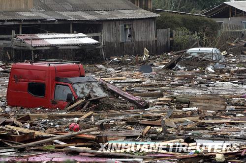 2月28日,智利佩尤韋附近海岸在地震后一片狼藉。智利總統(tǒng)巴切萊特28日下午宣布,強(qiáng)烈地震已經(jīng)使該國造成708人死亡。新華社/路透