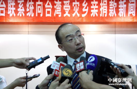 全國(guó)臺(tái)聯(lián)8月25日上午在北京召開新聞發(fā)布會(huì),全國(guó)政協(xié)委員、全國(guó)臺(tái)聯(lián)副會(huì)長(zhǎng)紀(jì)斌介紹全國(guó)臺(tái)聯(lián)系統(tǒng)和大陸臺(tái)胞捐款的有關(guān)情況。(中國(guó)臺(tái)灣網(wǎng) 鐘寶華 攝)