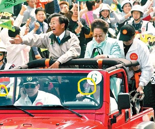 2004年3月19日,臺(tái)灣地區(qū)領(lǐng)導(dǎo)人選舉投票日前夕,當(dāng)時(shí)的陳水扁和呂秀蓮在臺(tái)南拜票時(shí)離奇遭開(kāi)槍射傷,次日以微弱優(yōu)勢(shì)勝選。案經(jīng)警調(diào)專案小組、臺(tái)南地檢署偵辦,及鑒識(shí)專家李昌鈺來(lái)臺(tái)協(xié)助,宣稱兇嫌是已經(jīng)死亡的臺(tái)南市民陳義雄。