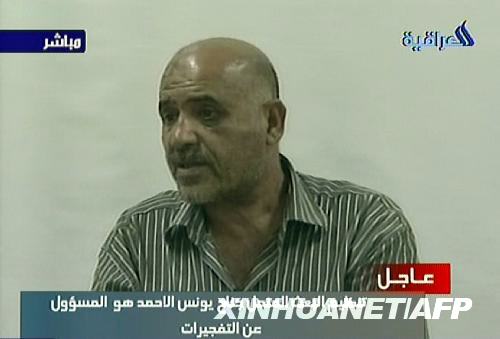 這張8月23日的電視截圖顯示,涉嫌參與8月19日巴格達(dá)特大爆炸案的維薩姆·阿里·卡齊姆·易卜拉欣在一段錄像中陳述相關(guān)情況。當(dāng)天,伊拉克官員通過伊拉克電視臺公布了被抓獲的涉嫌策劃和實(shí)施19日巴格達(dá)市中心特大爆炸襲擊的這名恐怖組織成員情況。新華社/法新