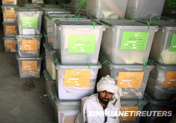 8月25日,在阿富汗首都喀布爾的阿獨(dú)立選舉委員會(huì),一名男子在票箱前休息。新華社/路透