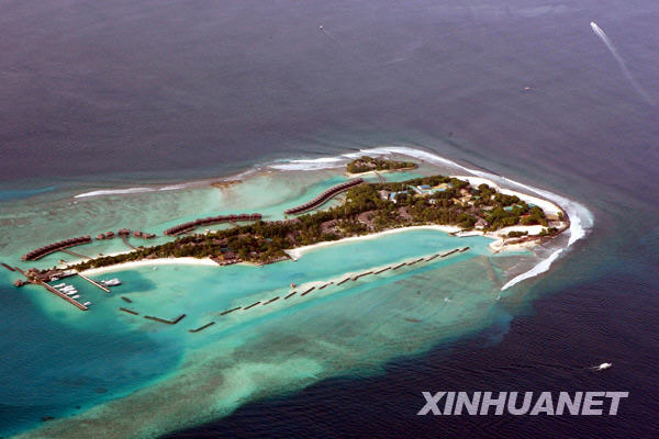 這是9月7日在馬爾代夫上空拍攝到的一個(gè)旅游島。位于印度洋中的南亞島國(guó)馬爾代夫,1200個(gè)島嶼的平均海拔只有1.5米。一批科學(xué)家發(fā)布的最新報(bào)告表明,如果目前全球變暖的趨勢(shì)得不到遏制,那么馬爾代夫和其他一些地勢(shì)低洼的國(guó)家可能會(huì)在本世紀(jì)消失。馬爾代夫總統(tǒng)納希德表示,馬爾代夫?qū)⒈M力避免這種情況出現(xiàn),但在最壞的情況下,馬爾代夫可能會(huì)舉國(guó)搬遷。新華社記者陳占杰攝