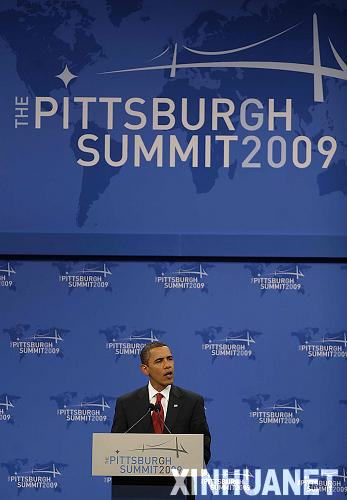 9月25日,在美國(guó)匹茲堡市,美國(guó)總統(tǒng)奧巴馬在二十國(guó)集團(tuán)峰會(huì)后舉行的記者會(huì)上回答記者提問(wèn)。新華社記者張巖攝