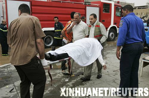 10月25日,在伊拉克首都巴格達,人們運送爆炸事件遇難者的遺體。當天,巴格達市中心發(fā)生兩起汽車炸彈襲擊,死亡人數(shù)已升至至少90人。新華社/路透