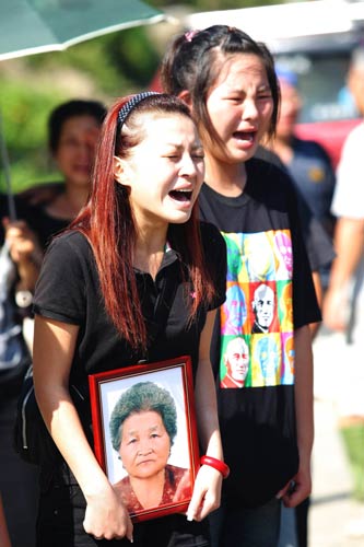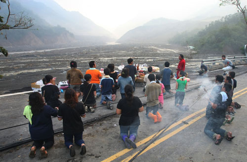 中新網(wǎng)8月15日電 莫拉克臺風帶給臺灣嚴重災情,高雄縣甲仙鄉(xiāng)小林村大批居民被土石流淹沒。甲仙鄉(xiāng)公所今天上午請千佛山協(xié)助為小林村9到18鄰遭淹埋的罹難村民,舉辦頭七法會,現(xiàn)場擁進千余名家屬,哭聲不斷,場面令人鼻酸。
