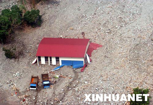 臺風(fēng)“莫拉克”重創(chuàng)南臺灣,山川變色,昔日迷人的峻嶺峭壁、溪流瀑布瞬間就成為駭人的“魔鬼”。位于高雄縣北部的那瑪夏鄉(xiāng)大量房屋與農(nóng)田被泥石流沖毀,對外交通阻斷。新華社發(fā)