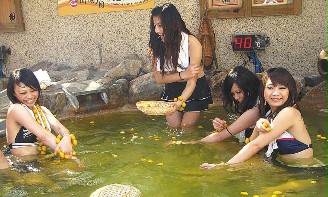 “您可以與金棗共!”宜蘭縣礁溪鄉(xiāng)川湯春天溫泉飯店推出“金棗湯”,增加泡湯樂趣,業(yè)者還邀辣妹編了“金棗操”,把落山風(fēng)、西北雨等融入舞姿,帶游客健康跳一下。