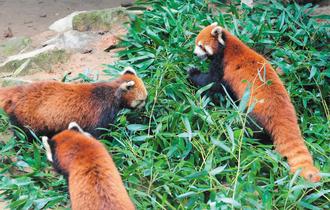 現(xiàn)在動(dòng)物園內(nèi)有的三只小熊貓,均位于溫帶動(dòng)物區(qū),兩只約七、八歲,一只為十多歲,其中兩只為2004年由日本多摩動(dòng)物園贈(zèng)送,年紀(jì)偏大。
