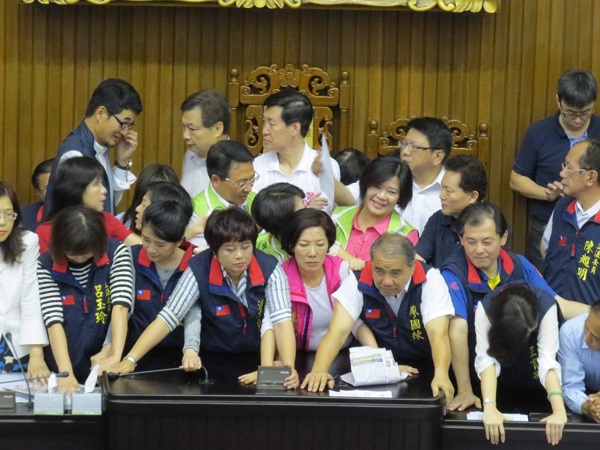 中國(guó)臺(tái)灣網(wǎng)6月25日消息 據(jù)臺(tái)灣“中廣新聞網(wǎng)”報(bào)道,今天是臺(tái)灣“立法院”本次臨時(shí)會(huì)的最后一天,而為了讓證所稅、12年義務(wù)教育及核四“公投案”能過(guò)完成“二、三讀”程序,國(guó)民黨“立院”黨團(tuán)今天發(fā)出行動(dòng),一早6點(diǎn)40分就占據(jù)了議場(chǎng)主席臺(tái)。不過(guò)在野黨也不示弱,不到7點(diǎn),也進(jìn)入會(huì)場(chǎng)表達(dá)不滿,雙方還一度發(fā)生推擠沖突,并且持續(xù)對(duì)峙中。