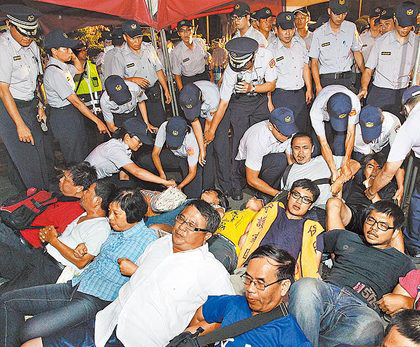 苗栗大埔自救會(huì)連日來(lái)在臺(tái)當(dāng)局“行政院”前抗議,臺(tái)北市警方昨凌晨強(qiáng)制驅(qū)離,有2名民眾送醫(yī)觀察。(圖片來(lái)自臺(tái)媒)