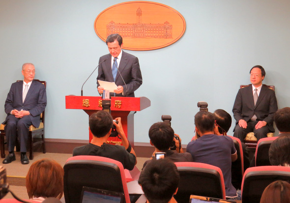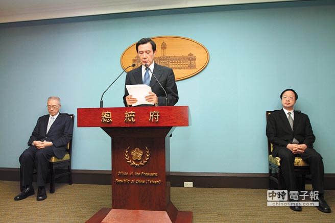 馬英九在吳敦義(右)、江宜樺(右)陪同下召開(kāi)記者會(huì)