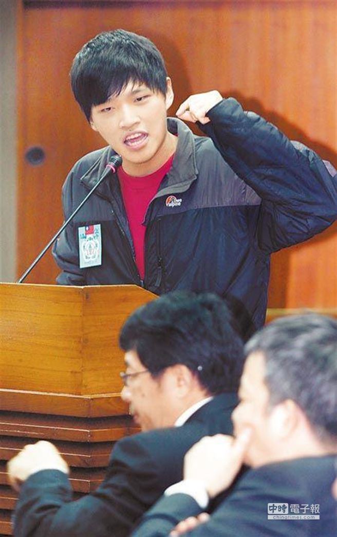 臺(tái)灣清華大學(xué)延畢生陳為廷(左)去年12月,在臺(tái)灣“立法院”怒批當(dāng)局“教育部長”蔣偉寧(中),引發(fā)正反意見爭(zhēng)論。(圖片來源:臺(tái)灣中時(shí)電子報(bào))