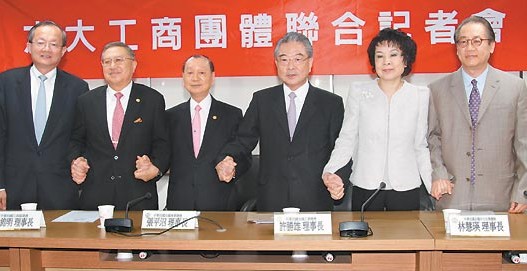 6人在媒體前手牽著手、表達(dá)工商界團結(jié)一致,呼吁當(dāng)局盡速“平息政治紛擾,恢復(fù)臺灣經(jīng)濟動能”。