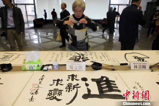 兩岸年度漢字揭曉后,閩臺(tái)知名書法家現(xiàn)場(chǎng)潑墨揮毫,書寫各種字體的“進(jìn)”字。臺(tái)灣書法家張炳煌的附注為“兩岸交融同躍進(jìn),九州鼎盛享安和”,基隆市書道會(huì)理事長(zhǎng)張明萊則寄語(yǔ)“書寫兩岸民意,共同推進(jìn)和平繁榮”。