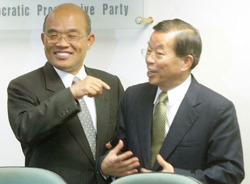 謝長廷:柯文哲是否入黨,要考慮綠營是不是能贏。(左為蘇貞昌,右為謝長廷,網(wǎng)絡(luò)圖)