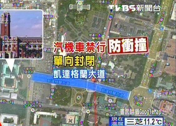 傳出馬英九辦公室考慮封閉凱達(dá)格蘭大道,要禁止機(jī)動(dòng)車進(jìn)入。(圖片來自臺(tái)灣TVBS)