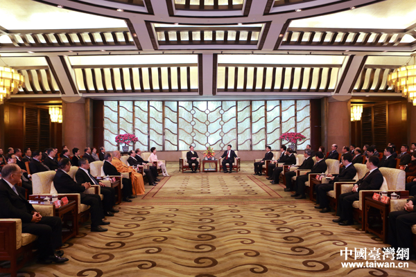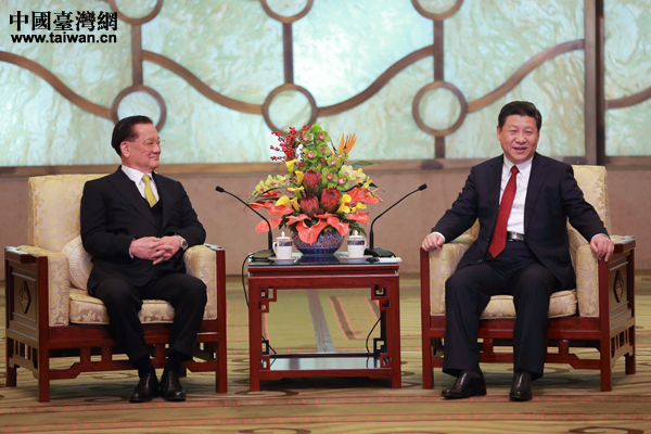 18日下午,習(xí)近平在北京釣魚(yú)臺(tái)國(guó)賓館會(huì)見(jiàn)了中國(guó)國(guó)民黨榮譽(yù)主席、兩岸和平發(fā)展基金會(huì)董事長(zhǎng)連戰(zhàn)及隨訪(fǎng)的臺(tái)灣各界人士。(中國(guó)臺(tái)灣網(wǎng) 于斯文 攝)