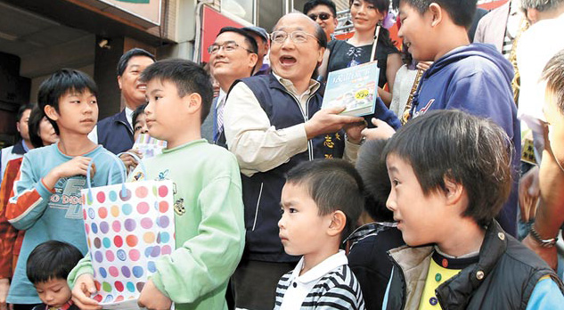 胡志強(qiáng)(中)昨日出席臺中藍(lán)興媽祖萬春宮舉辦的“媽祖賜福愛心宴”活動。