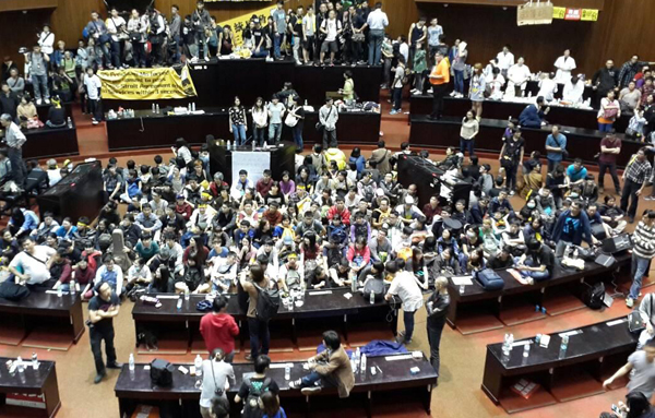 抗議學生繼續(xù)“霸占”臺灣立法機構(gòu)議事堂。(圖片來源:臺灣今日新聞網(wǎng))