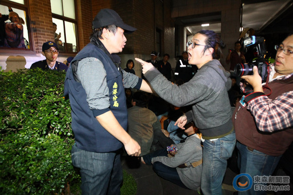 過程中群眾一度與現(xiàn)場警方發(fā)生推擠,但有部分民眾是在爬窗時遭玻璃割傷,F(xiàn)場的學(xué)生和民眾憑人數(shù)優(yōu)勢,還拿麥克風(fēng)喊“‘行政院’門已打開,可以走進(jìn)去”。