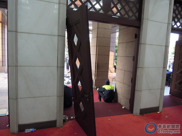 據(jù)報(bào)道,臺(tái)灣“行政院”中央大樓內(nèi)部多遭破壞,不只門(mén)窗破損,“政務(wù)委員”辦公室也遭到蹂躪。為了驅(qū)離民眾,警方在24日凌晨開(kāi)始動(dòng)作,透過(guò)人力優(yōu)勢(shì)將“政院”清空,部分民眾已經(jīng)退回“立法院”。