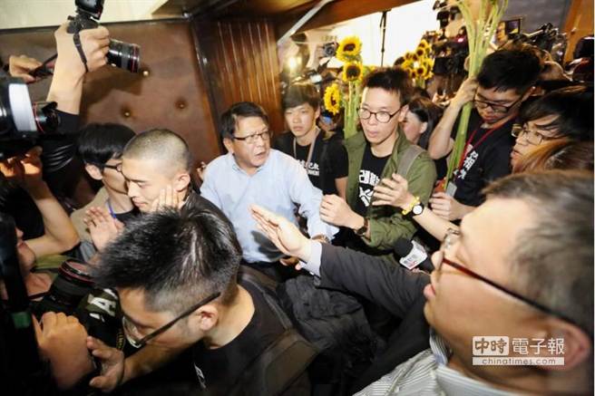 占領(lǐng)“立院”學(xué)生將議事槌歸還“國會(huì)”。 (圖片來自臺(tái)媒)