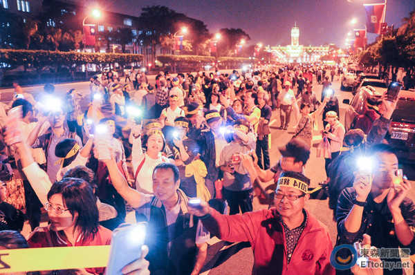 民進黨組織反核行動聲援林義雄,3千人高舉手機上凱道。(臺媒圖)