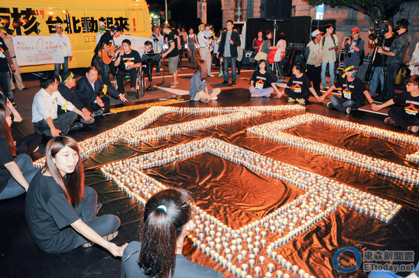 20時14分一到,所有參與群眾高舉手機、高喊“2014終結核四”口號,并齊唱“島嶼天光”,隨后便往凱道集結;凱道現(xiàn)場除以小蠟燭點燈,排出活動主題“命”字外,更以激光束把“反核”二字打在馬辦上,整場活動晚間10點左右結束。(中國臺灣網 高旭)