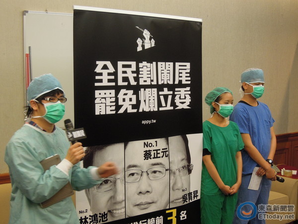 “割闌尾”團(tuán)隊(duì)5日召開記者會(huì),呼吁民眾開始動(dòng)刀。(圖片來自臺(tái)媒)