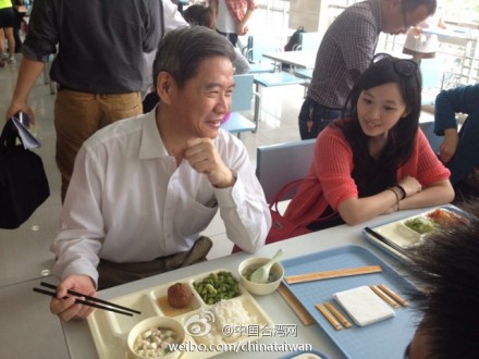 中國臺(tái)灣網(wǎng)5月15日消息 據(jù)中國臺(tái)灣網(wǎng)官方微博“@中國臺(tái)灣網(wǎng)”報(bào)道,中共中央臺(tái)辦、國務(wù)院臺(tái)辦主任張志軍15日在浙江大學(xué)與臺(tái)灣學(xué)生一同排隊(duì)打飯,并在食堂餐敘。