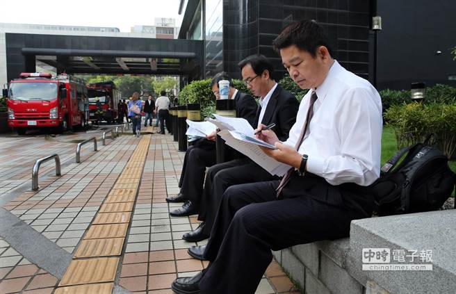 “立委”孔文吉等人忙走到戶外。(圖片來源:臺灣中時電子報)
