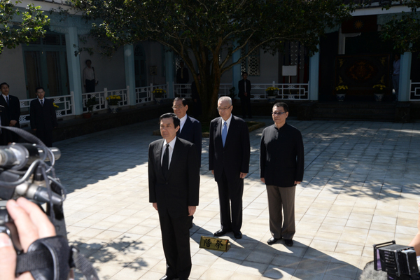 據(jù)臺灣“中央社”報道,馬英九神情肅穆,獻花致祭并行三鞠躬禮,俯首追思,典禮莊嚴肅穆。隨后,馬英九與吳敦義走進陵寢,馬英九注視蔣介石遺照,再行鞠躬后才轉身離去,神情肅穆,并沒有發(fā)表任何談話。