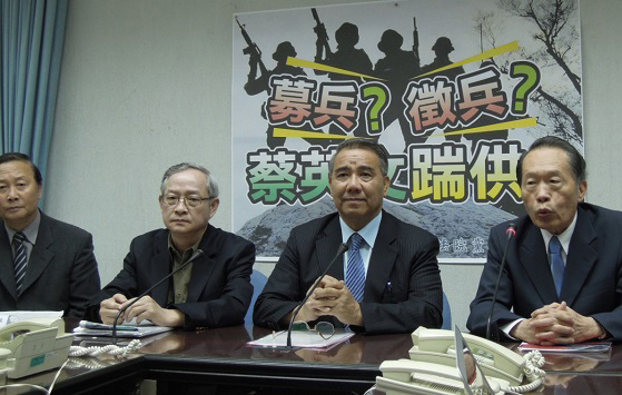 對(duì)于民進(jìn)黨主席、臺(tái)灣2016“大選”提名人蔡英文表示,若當(dāng)選后,將在募兵和征兵制度間找到一個(gè)最好的制度。國民黨“立法院”黨團(tuán)今(22)天召開記者會(huì),“藍(lán)委”林郁方痛批,這種講法是不負(fù)責(zé)任,這樣的人如果未來當(dāng)“三軍統(tǒng)帥”,臺(tái)軍將不知為誰而戰(zhàn)為何而戰(zhàn)。(圖片來源:臺(tái)灣中廣新聞網(wǎng))