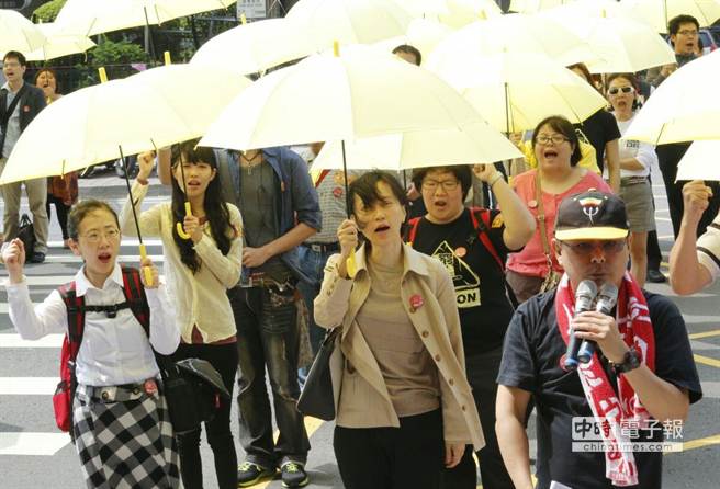臺(tái)灣勞團(tuán)高喊“給我40,其余免談”。(中時(shí)電子報(bào)圖 陳振堂攝)
