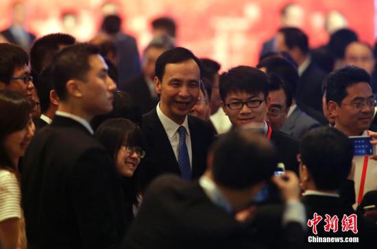 5月3日,第十屆兩岸經(jīng)貿(mào)文化論壇在上海舉行。中國(guó)國(guó)民黨主席朱立倫出席本次論壇開(kāi)幕式并致辭。中新社發(fā) 湯彥俊 攝