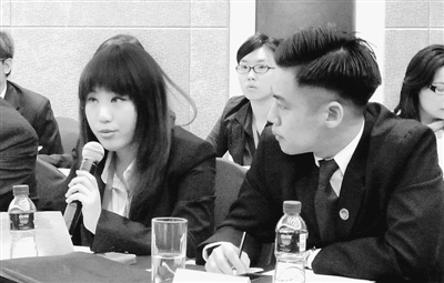 淡江大學(xué)學(xué)生林欣諭就兩岸青年學(xué)生交流發(fā)表自己的看法。人民日報 記者孫立極攝