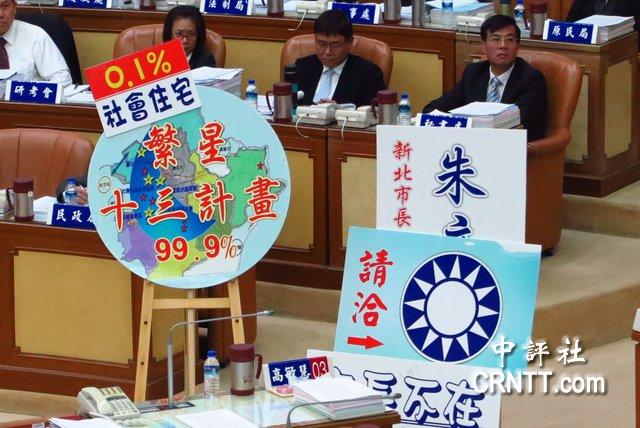 民進(jìn)黨舉牌杯葛朱立倫。(中評社彭媁琳攝)
