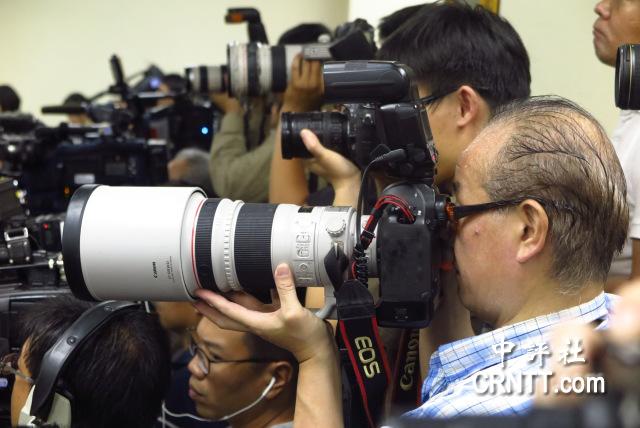 記者拿大炮拍到滿頭大汗。(中評(píng)社 彭媁琳攝)
