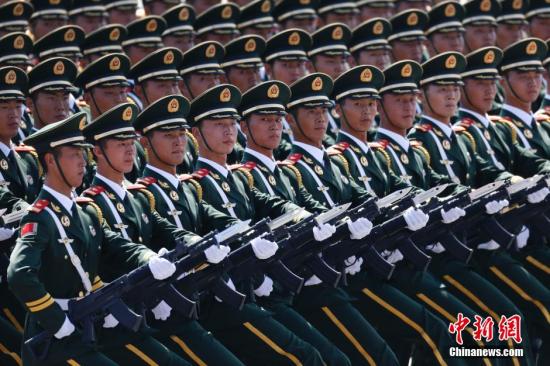 9月3日上午,紀(jì)念中國(guó)人民抗日戰(zhàn)爭(zhēng)暨世界反法西斯戰(zhàn)爭(zhēng)勝利70周年大會(huì)在北京隆重舉行。圖為三軍儀仗隊(duì)。中新社記者 趙振清 攝