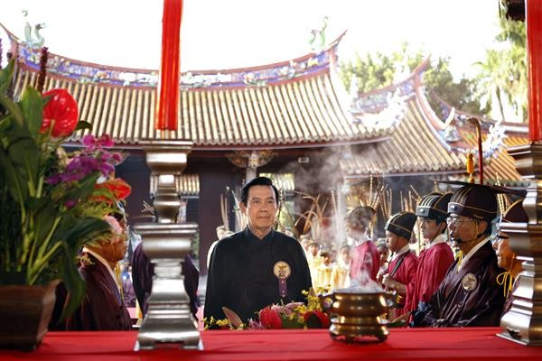 馬英九出席臺(tái)北孔廟釋奠典禮,臺(tái)北市長(zhǎng)柯文哲則缺席。(資料照)
