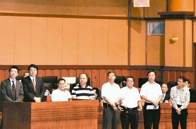 議員呂美玲質疑市府利用行政資源介入輔選,要求七區(qū)區(qū)長排排站列席說明,市長林右昌(左2)否認傳聞。(圖片取自臺媒)